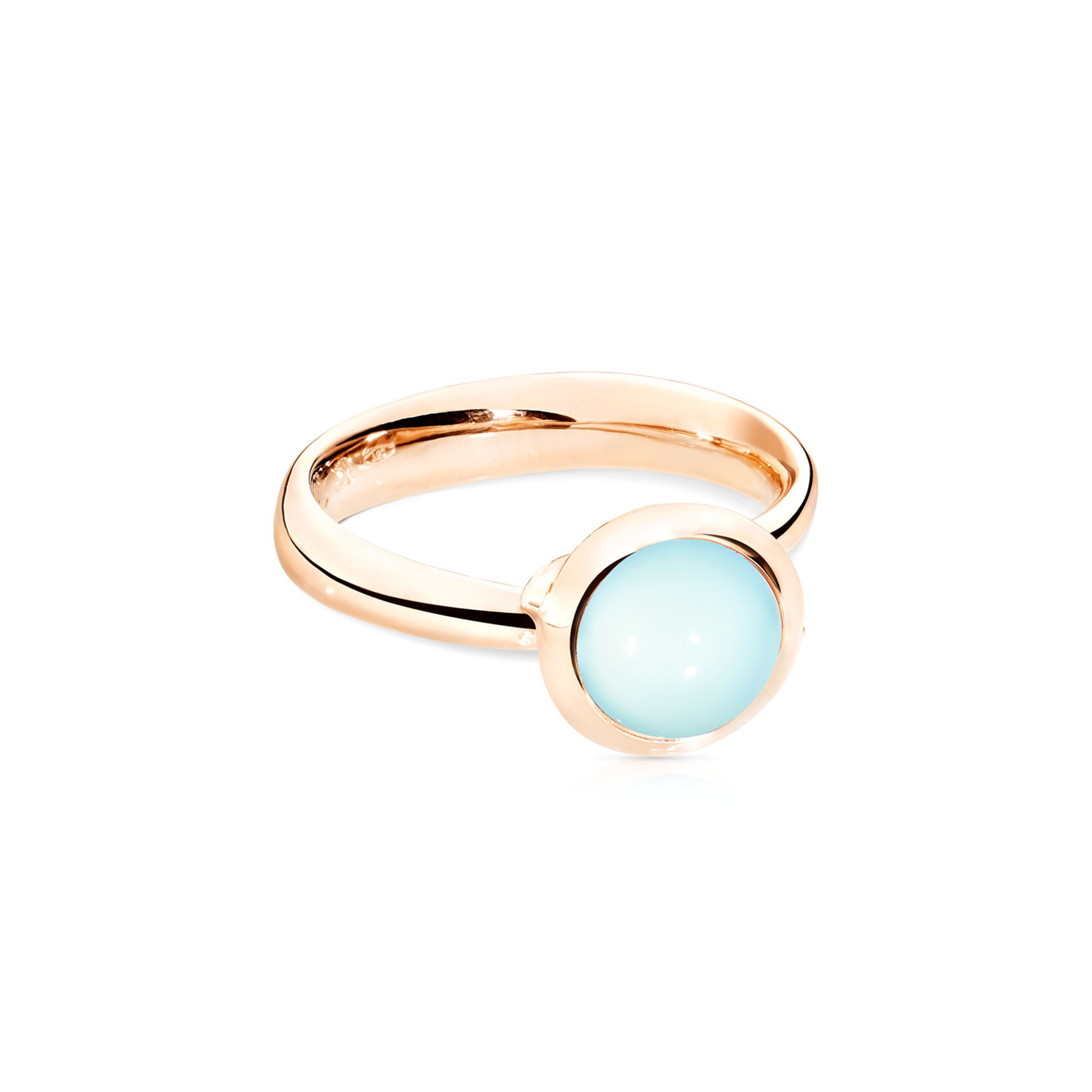 Ref. R-BOU-s-ChAq-rg - Unser BOUTON Ring small ist mit einem schönen Chalcedon Cabochon versehen und in einer unendlichen Vielfalt von Edelsteinen und allen Goldfarben erhältlich. Kombinieren Sie die kleinen BOUTON Ringe mit großen oder anderen kleinen oder der Solitaire-Version!